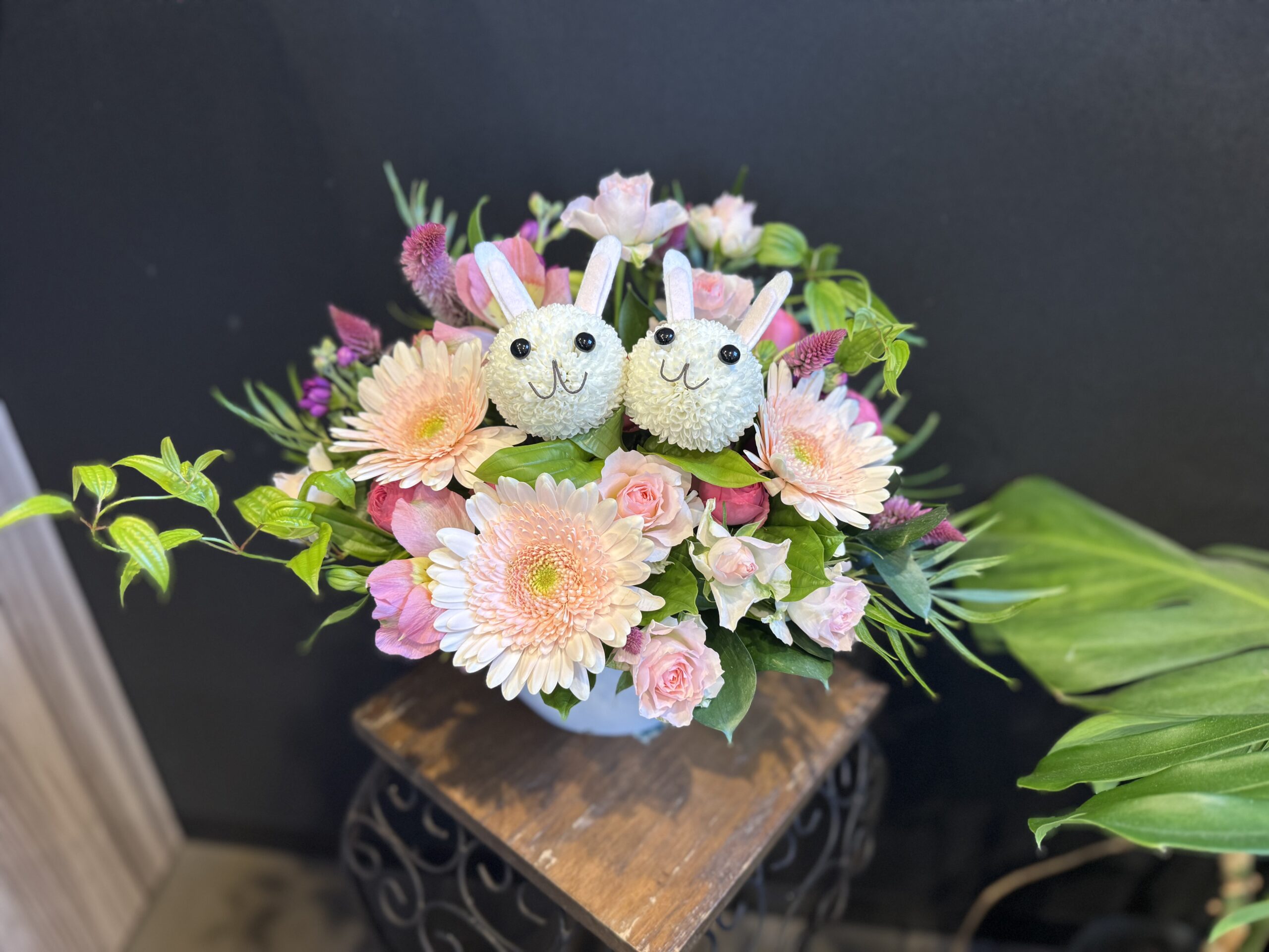 こちらの商品に関しましてはうさぎの周りのお花は季節のお花でお任せとさせていただきます。ご要望等ございましたら備考欄にご記入をお願いいたします。