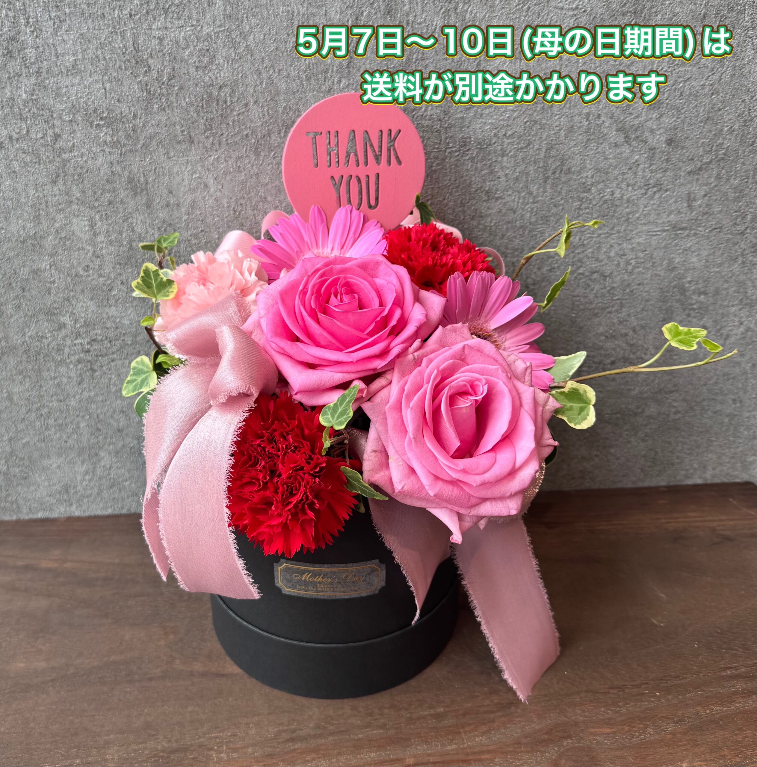 5月7日から10日(母の日期間)の送料が通常配達地域880円(税込)、有料配達地域1,100円(税込)となります。